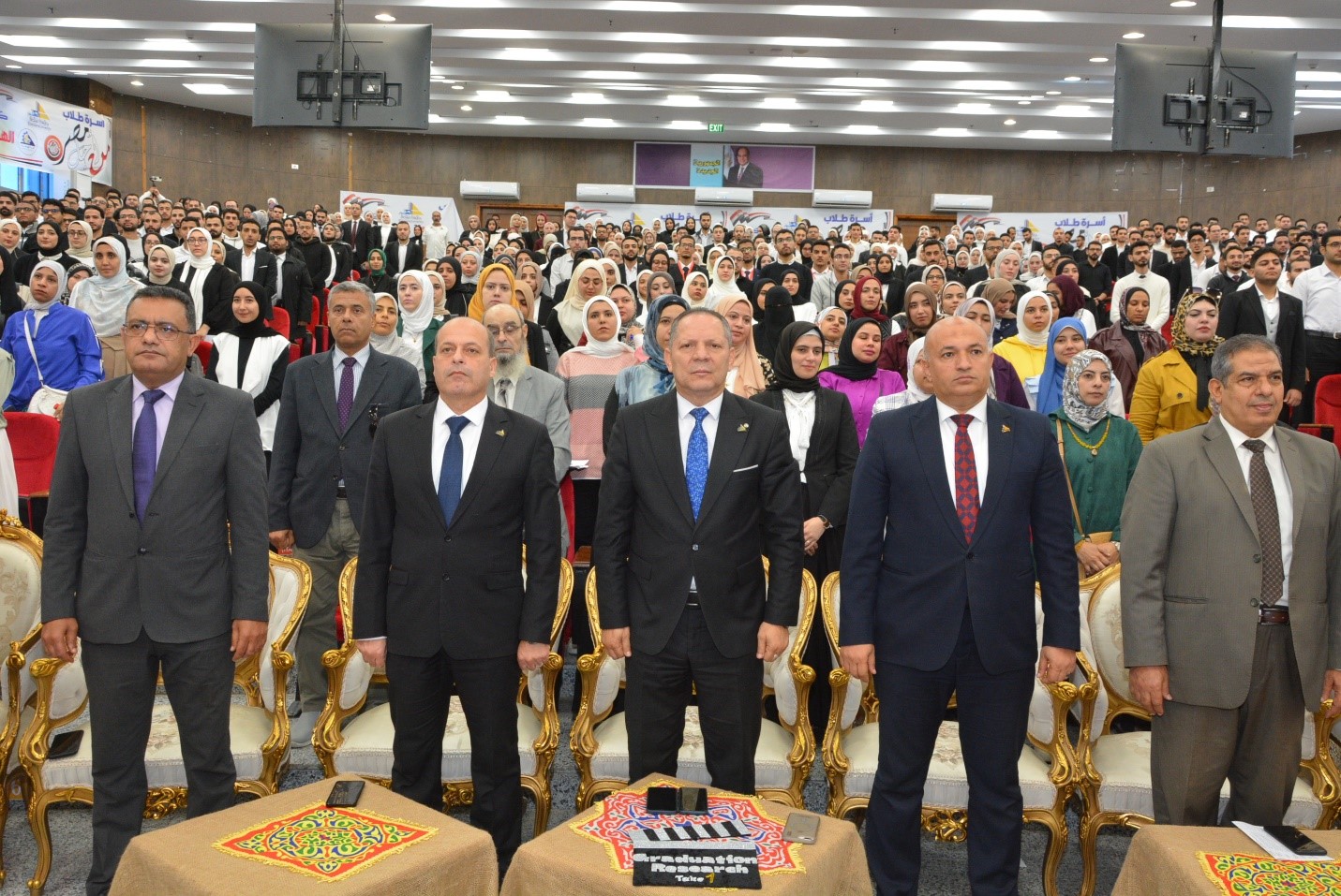 في إطار إنتهاء الفصل الدراسى التاسع بالمستوى الخامس من برنامج بكالوريوس الطب والجراحة نظام الساعات المعتمدة وبدء فترة الاختبارات و في إطار تقييم مقرر Evidence based Medicne and graduation researchوالذى يتضمن قيام الطالب بعمل بحث علمى يطبق من خلاله ما تم دراسته من معارف ومهارات البحث العلمى خلال المستويات الأربعة السابقة فقد تم تحديد يوم الخميس الموافق 27/11/2025 لتقييم المخرجات البحثية للطلاب خلال المقرر